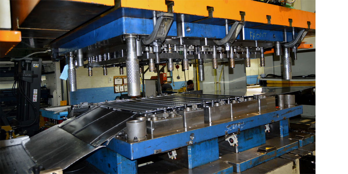 For high volume production runs of sheet metal components, pressing or stamping tooling is the most cost effective manufacturing method. Cost savings arrise from automated machinery producing hundreds of parts per hour, often in pairs.